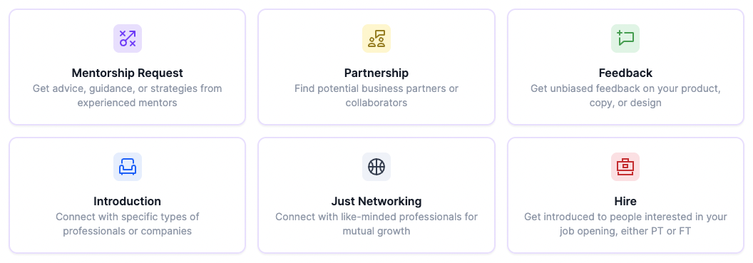 Whether you’re looking for mentorship to get unstuck, feedback on a product, a co-marketing partner, the right intro, fresh networking energy, or even your next hire… It’s all here, in one place.