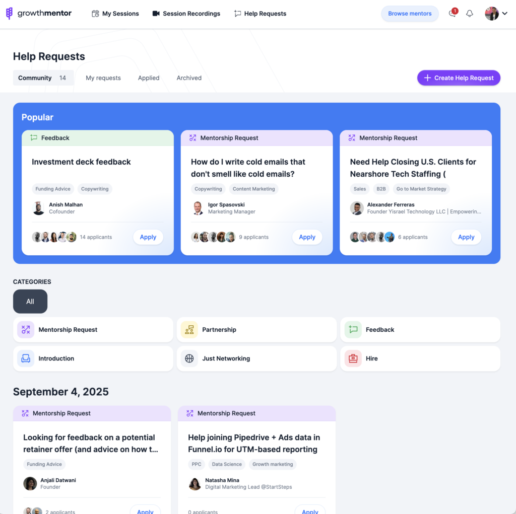 Post your first Help Request on GrowthMentor and see what happens when you stop networking and start requesting.